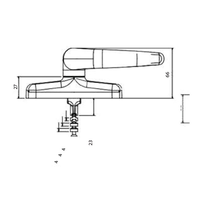 Cremonese a scatto con impugnature destra. Cremone with moulded detent system and right grip. Cremonese a scatto con impugnature sinistra. Cremone with moulded detent system and left grip.