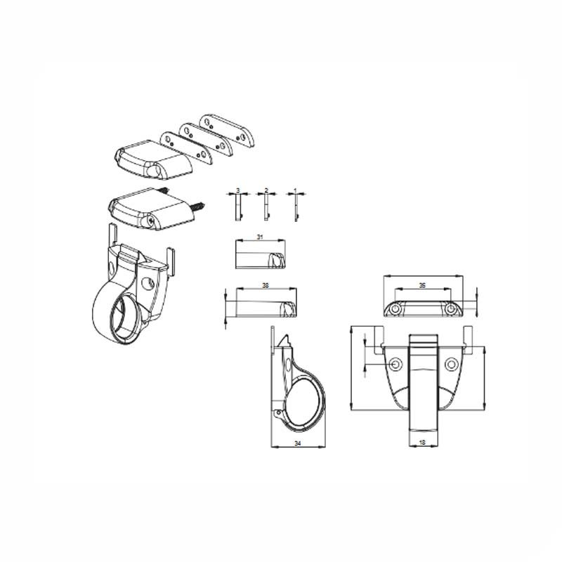 Additional Thickness: Offers thickness options of 1, 2, and 3 mm, compatible with both counter plates, for surmount systems up to 13 mm.